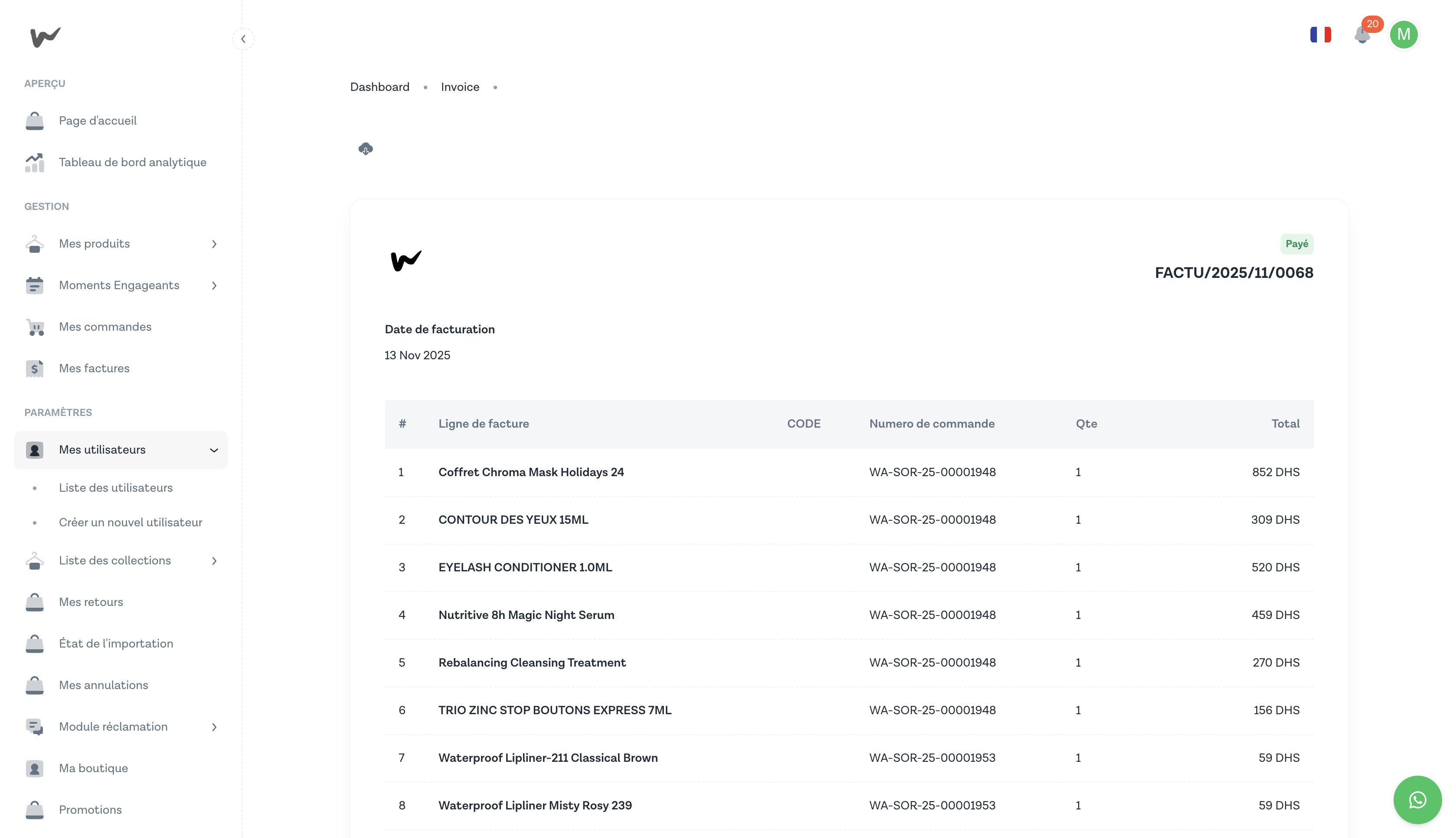 Ajoutez des membres d'équipe à votre compte vendeur Wasal, définissez leur rôle et gérez leurs accès depuis la section Mes utilisateurs.